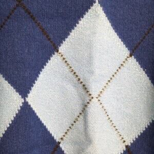 Features: Blue and Navy, Argyle Pattern, Turtleneck, Long Sleeves, Merino Wool, Pullover