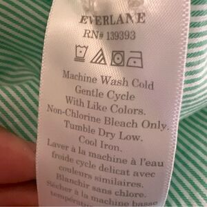 This Everlane button-up shirt is the perfect addition to your wardrobe. With a relaxed fit and classic striped pattern, it's ideal for any occasion, from casual to business attire. The shirt features a collared neckline, long sleeves, and a button closure for a timeless look.