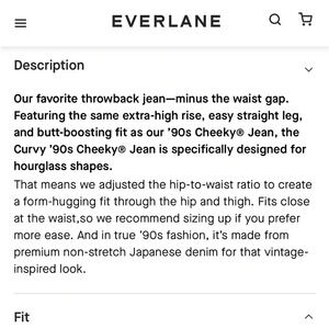 NWT Everlane Curvy ‘90s Cheeky Straight Jean Ankle Length Size 23