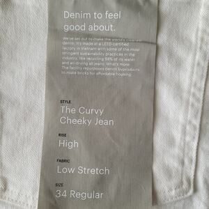 NWT Everlane Curvy Cheeky Jean High Rise Straight Size 34R White Classic Coastal