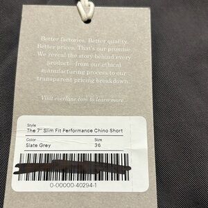 New with tags, Everlane Men’s 7” Slim Fit Performance Chino Shorts in Gray, size [insert size]. These modern, tailored shorts are made with lightweight, breathable performance fabric that stretches for all-day comfort. Designed with a 7-inch inseam, they offer a clean, slim silhouette that works just as well for casual wear as it does for dressed-up summer outings. Moisture-wicking, quick-drying, and built to move with you. Never worn, in perfect condition with tags attached.