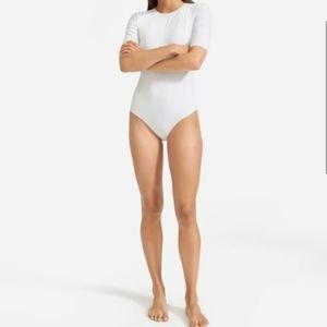 NWT Everlane Short Sleeve Crew Neck Bodysuit White Small - New with tags. Thong cut.