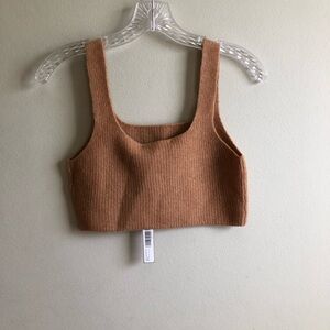NWT Everlane Sz M Tan Camel The Cozy Stretch Tank Top Cropped Ribbed