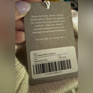 NWT Everlane The Felted Merino Wool Beanie Hat in Heathered Oat One Size Winter Cozy Warm Outdoor Gift Christmas Minimalist Unisex