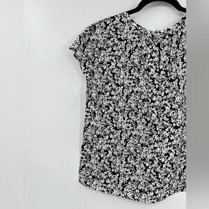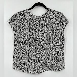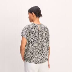 🆕 NWT Everlane The Gathered Neck Top Blouse Floral Flower Capped Sleeve Short Sleeve Button Closure Black Bone Mini Floral White Size XXS