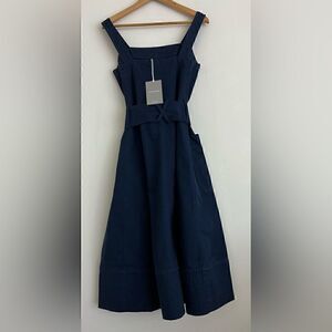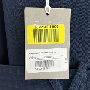 NWT Everlane The Organic Cotton Herringbone Dress in Navy Size XS