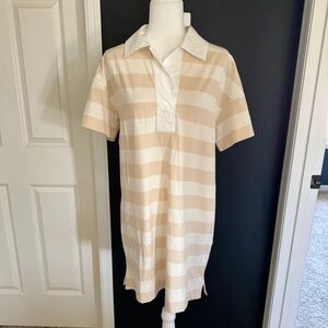 NWT Everlane The Organic Cotton Polo Dress Tan White Stripe Size Medium