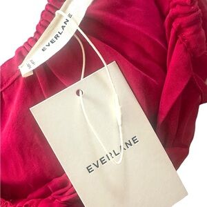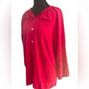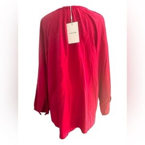 NWT Everlane Women's Red Fuchsia Tie Collar Silk Feel Blouse Size Medium