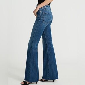 NWT Express ‘70s Flare Raw Hem Mid Rise Blue Jeans | Size 8R