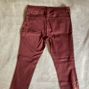 NWT Express Ankle Legging Size 12R Regular Skinny High Rise Pink Embroidered