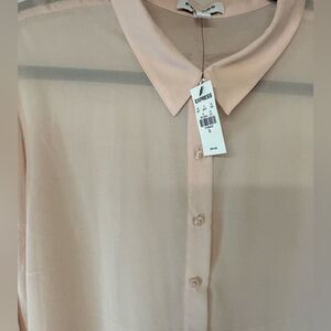 NWT Express Ballet Pink Portofino Sheer Balletcore Minimalist Button Up Shirt XL