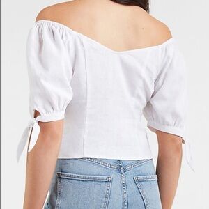 NWT - Express Beige Linen-Blend Off The Shoulder Tie Sleeve Shirt