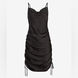 NWT Express Black Cowl Neck Ruched Side Tie Mini Slip Dress Size Small