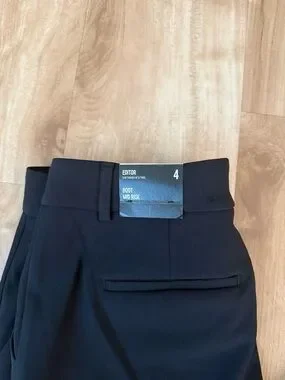 Sleek black dress pants from Express. Editor pants, slim through hip and thigh, boot mid rise. Smooth fabric with a tailored silhouette. Belt loops with front pockets. Clean, modern look for office or events.