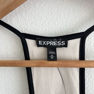 NWT Express spaghetti halter tank top with a plunging wrap v-neckline, black mesh lace, and nude color lining.