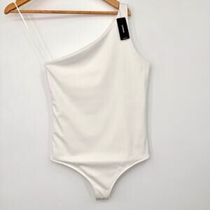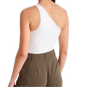 NWT Express Body Contour High Compression Ribbed One Shoulder Bodysuit White M