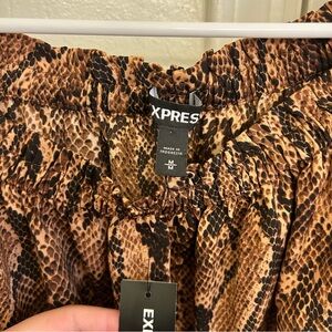 Keywords: Express blouse, snakeskin print top, off-the-shoulder blouse, women’s size medium, new with tags, flutter sleeve blouse, boho chic top, lightweight polyester blouse, trendy snakeskin shirt, Express fashion top