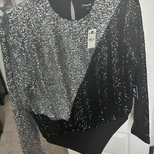NWT Express Clothing Sequined Colorblock thong bodysuit - size L