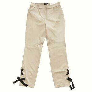 NWT Express Cream Ankle Pant Lace Up Detail XS Stretch Slim Straight Leg
