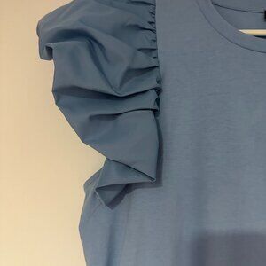 NWT Express Crew Neck Ruffle Sleeve Top Baby Blue Size Medium