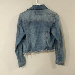 NWT Express Denim Distressed Blue Jean Jacket Women's Size XS