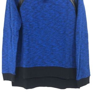 NWT Edgy Vegan leather & Zipper Accent Sweatshirt. Bold Heathered blue with black cuffs, neck, and bottom edges.