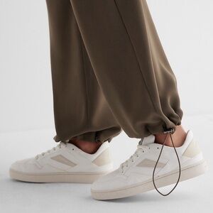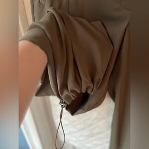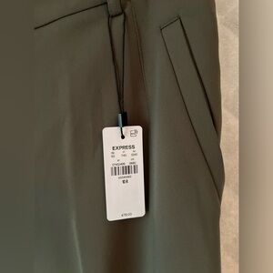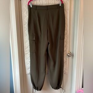Army green. Ankle ties, very chic. Hook and zipper closure. Side pockets. Lightweight crepe like fabric. 64% recycled polyester, 36% polyester. (BIN16)