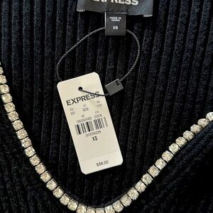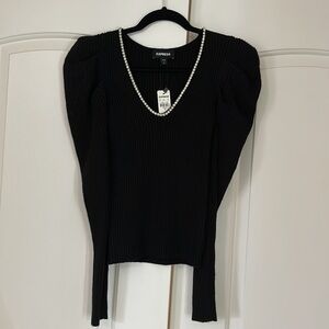 NWT Express Embellished V-Neck Puff Sleeve Sweater
