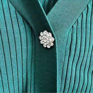 NWT Express Emerald Green V Neck Oversized Ribbed Sweater Dress sz XXS