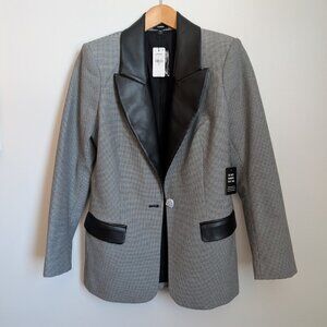 NWT Express Faux Leather Pieced Houndstooth One Button Blazer Size M