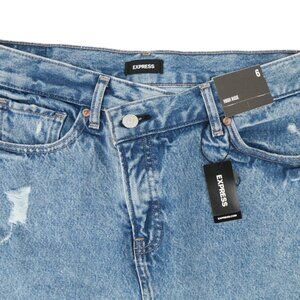 NWT Express Frayed Super High Waisted Crossover Waistband Mini Jean Skirt 6