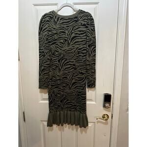 NWT Express Green Zebra Long Sleeve Ribbed Ruffle Hem Sweater Dress Size Large