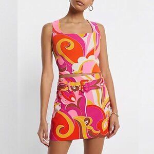 NWT Express High Waisted Retro Paisley Belted Mini Skirt