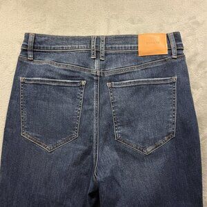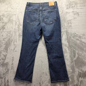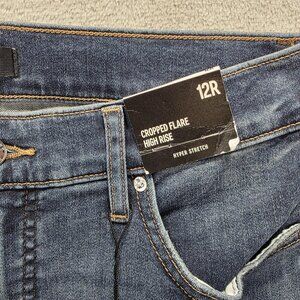 NWT Express Jeans Womens 12R Blue Cropped Flare High Rise Hyper Stretch Denim