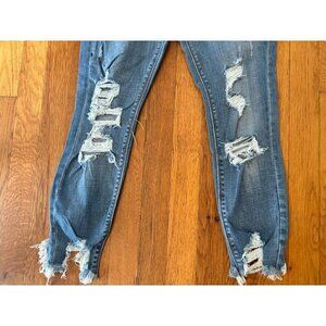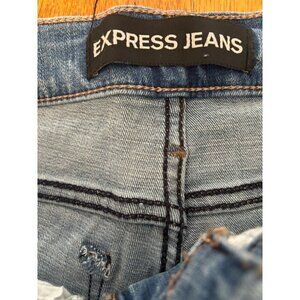 NWT Express Jeans Womens Size 4S Mid Rise Ankle Leggings Denim Distressed