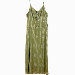NWT Express Maxi Dress Women's Size XL Olive Green Metallic Cutout Ruched Front