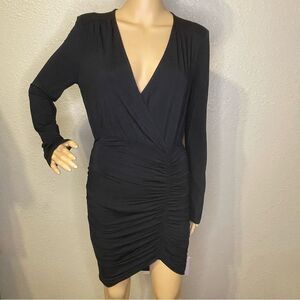 NWT Express Olivia Culpo Bodycon Ruched Long Sleeve Mini Dress Black Size Small