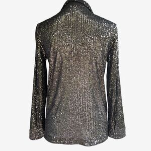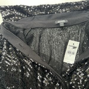 NWT Express Portofino Black Sequined Button Up Shirt Blouse XS