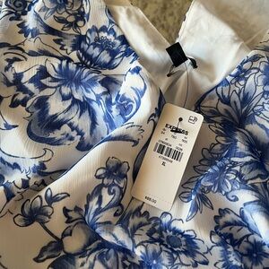 NWT Express Printed V-Neck Flutter Sleeve Smocked Waist Mini Dress, XL