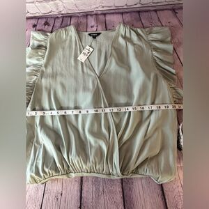 NWT Express Sage Green Flutter Sleeve Dreamy Romantic Surplice Thong Bodysuit L