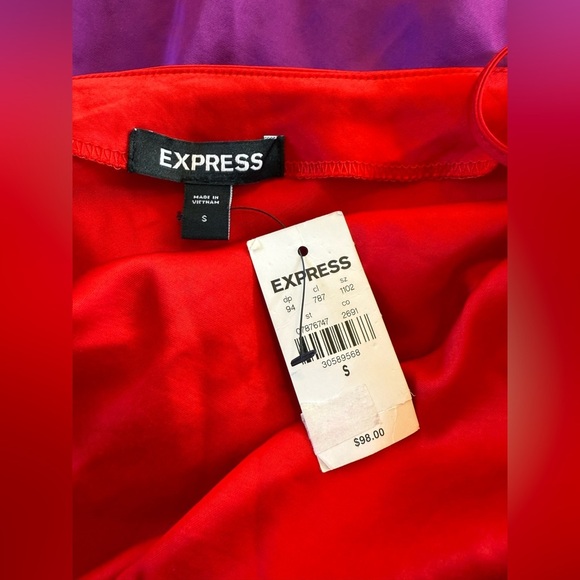 NWT Express Satin Color Block Cowl Neck Midi Slip Dress - Small - Purple/Red