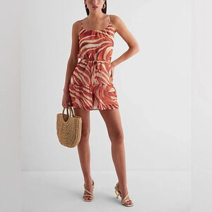 NWT Express Scoop Neck Tie Waist Romper Small Abstract Art Animal Print Flowy