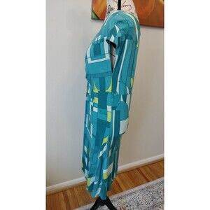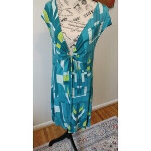 NWT! Express Sleeveless V-Neck A-Line Blue Green Geometric Print Dress. Size L