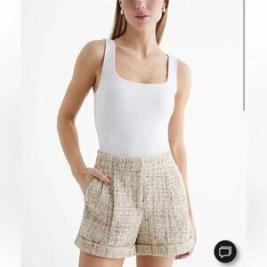 NWT Express Stylist High Waisted Sequin Tweed Pleated Shorts Size 10