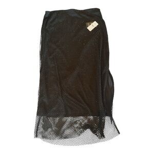 NWT Express Super High Waisted Rhinestone Mesh Midi Pencil Skirt Sz M Black