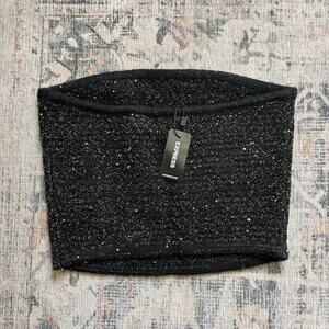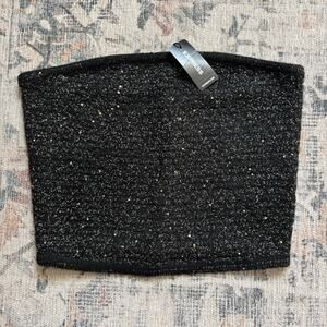 NWT Express Sweater Knit Strapless Top Black and Gold Glitter Wool Blend S