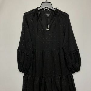 This listing is for a - NWT Express Textured Clip Dot Tiered Trapeze Dress Size Small Black