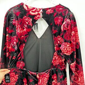 NWT Express Velvet Floral Long Sleeve Dress XL Dark Romantic Whimsigoth