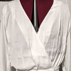 NWT White Textured double button wrap top. Marked a size small. Sorry it looks a wrinkled on the dress form. It's been sitting in the plastic it came in. I'm just too short wasted for this to work. I hope it can find a good home because it's super cute.