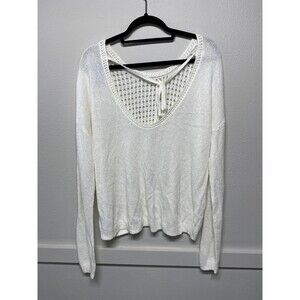 NWT Express White Lightweight Knit Open Back Long Sleeve Sweater Size Large